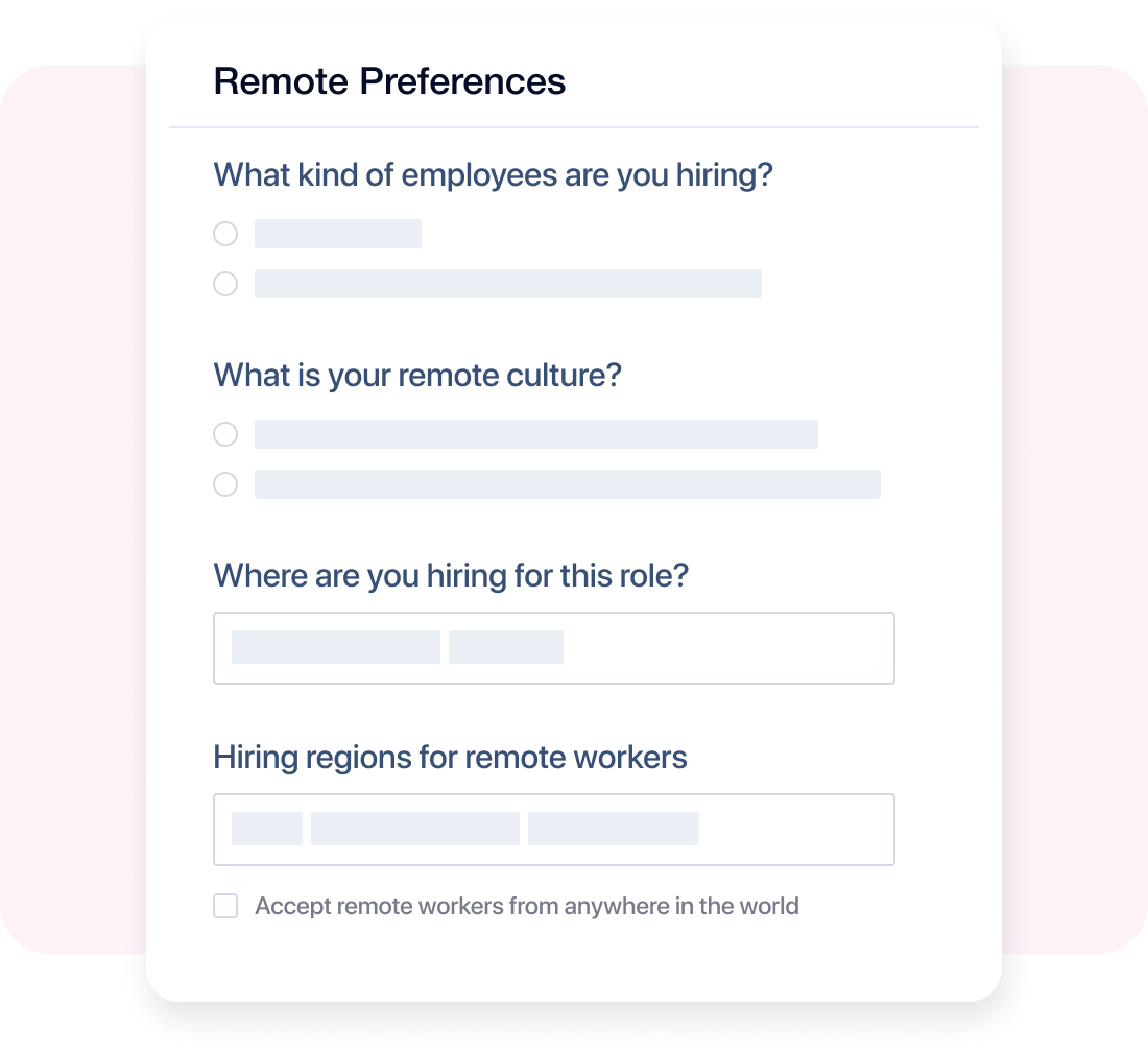 To get the most aligned applicants, we recommend you fill out as many parts of the job listing as you can -- this includes having a great company profile, a salary range, location specifications, style of work, and more.